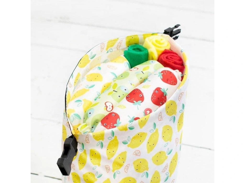 At' už jdete kamkoliv, tuto tašku na pleny Cute Fruit musíte mít sebou! Je ideální pro uložení použitých plen, ušpiněného oblečení či mokrých plavek, když jste mimo domov. Prázdná nezabírá žádné místo a když je plná, dokonale chrání ostatní věci.