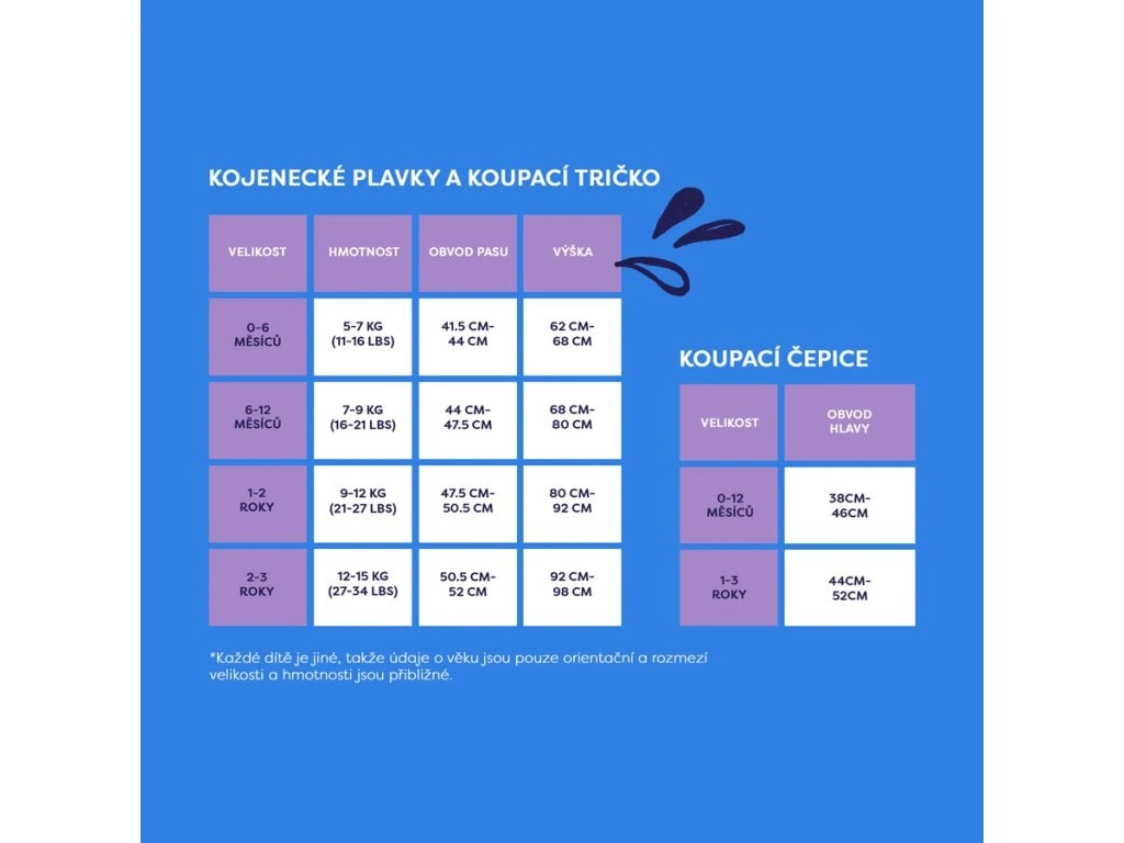 - Vyrobeno z lehké, rychle schnoucí tkaniny, která nebude zatěžovat dítě ve vodě.