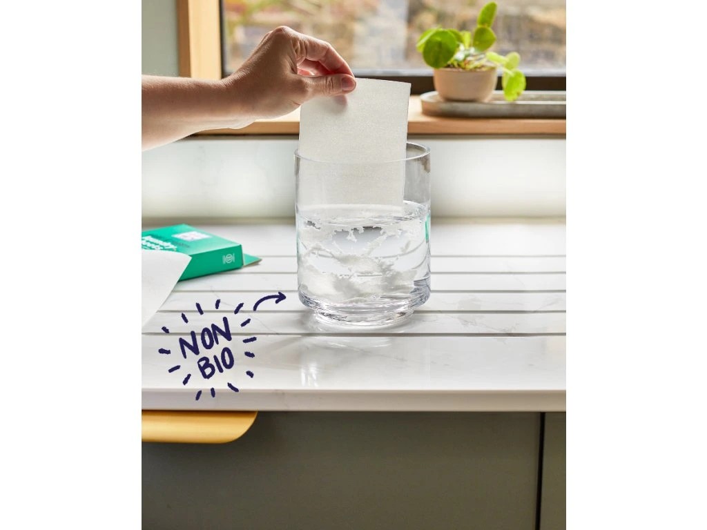 Tento ekologický prací prostředek kombinuje sílu prvotřídního pracího prostředku v důmyslných lehkých papírkách. Rozlučte se s nepořádnými kapslemi, práškem a tekutým práškem na praní. Žádný nepořádek, žádné odměřování. Účinná čisticí síla. Šetrný k oblečení, neúprosný ke skvrnám. Pouze jeden ubrousek na várku – jednoduché!