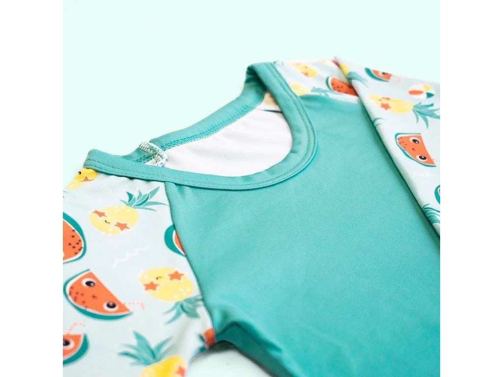 Perfektní UV40+ ochrana pro malé námořníky a objevitele! Chraňte pokožku dítěte s našim dětským tričkem do vody s UV filtrem. Tričko Tropical vhodně doplňuje plavky Bambino Mio, které najdete v souvisejícím zboží.