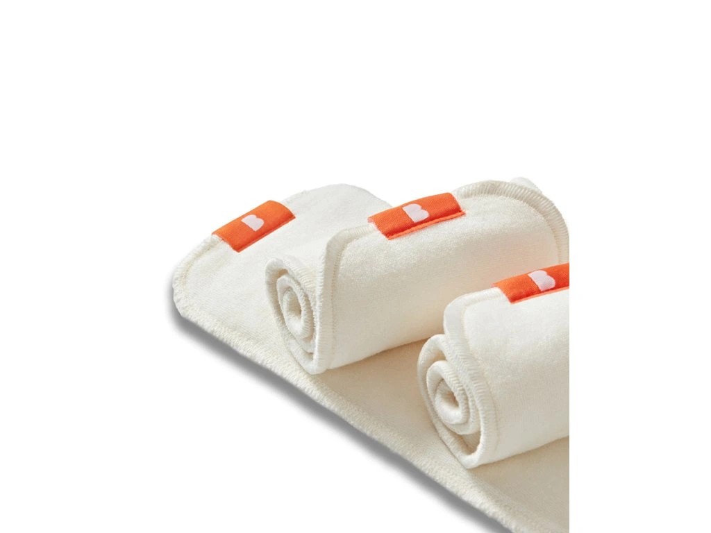 - Více vrstev bambusového froté (x2) a mikrovlákna (x2) pro rychlou absorpci bez úniků při stlačení.